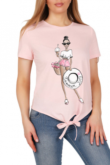Фото товара 18974, розовая футболка с завязками